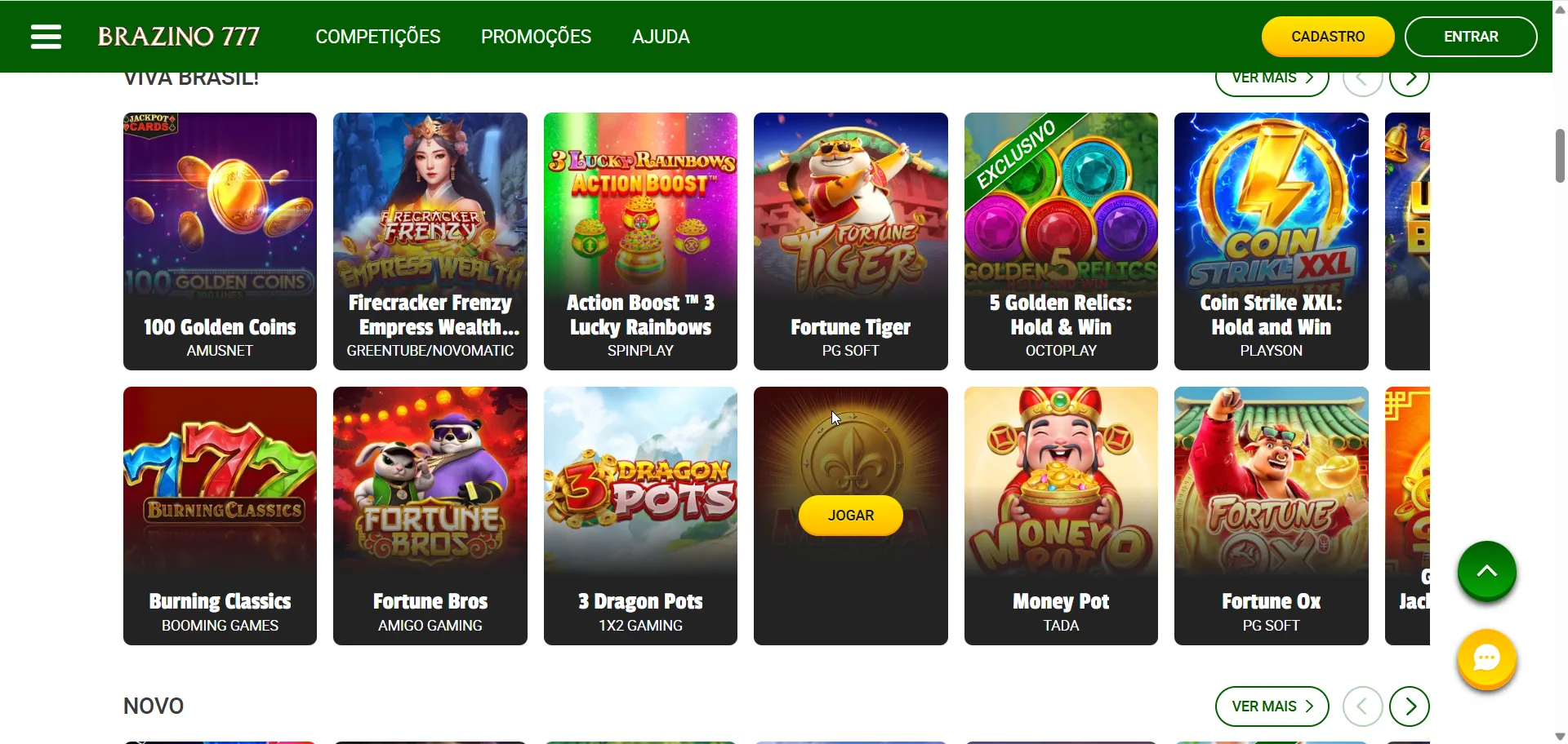 A Brazino777 jogo da galera funciona como agregador multimarcas com foco forte em slots e Live Casino. O diferencial não está em jogos exclusivos, mas na combinação de provedores consolidados.